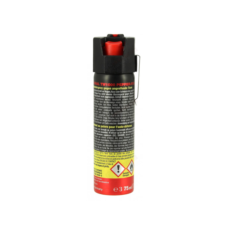 L'Aérosol de défense TW1000 Pepper Fog 75 ml est une solution de défense personnelle puissante et simple à utiliser. Grâce à sa buse spéciale, il diffuse un jet de gaz au piment OC (oléorésine de Capsicum) capable de neutraliser un agresseur en quelques secondes, avec un effet durable et une portée de 3 à 4 mètres.