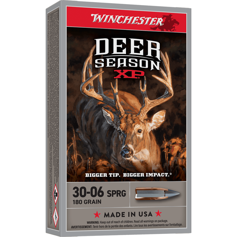 Calibre : .30-06 Springfield Projectile : Extreme Point (pointe polymère large) Poids disponibles : 150 gr / 9,7 g et 180 gr / 11,7 g Matériau du projectile : Plomb allié avec pointe polymère Vitesse initiale (150 gr) : 890 m/s Énergie initiale (150 gr) : 3849 J Vitesse initiale (180 gr) : 838 m/s Énergie initiale (180 gr) : 4097 J Conditionnement : Boîte de 20 cartouches